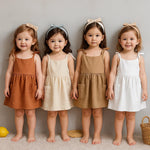 🌼 Keep your little one stylish and cool with this girls summer suspender dress made from a soft cotton-linen blend.