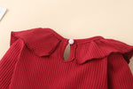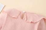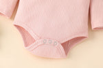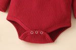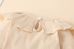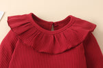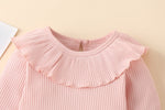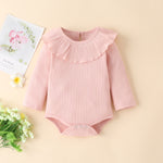 Ruffled Romper: Long sleeve pullover bodysuit with cute frill details.