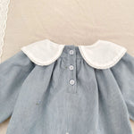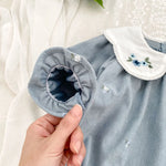 Featuring a beautiful, Peter Pan collar with delicate floral embroidery, this piece is perfect for family photos, spring holidays, or just a stylish day out.