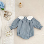 Vintage Long Sleeve Ruffle Romper with Floral Collar